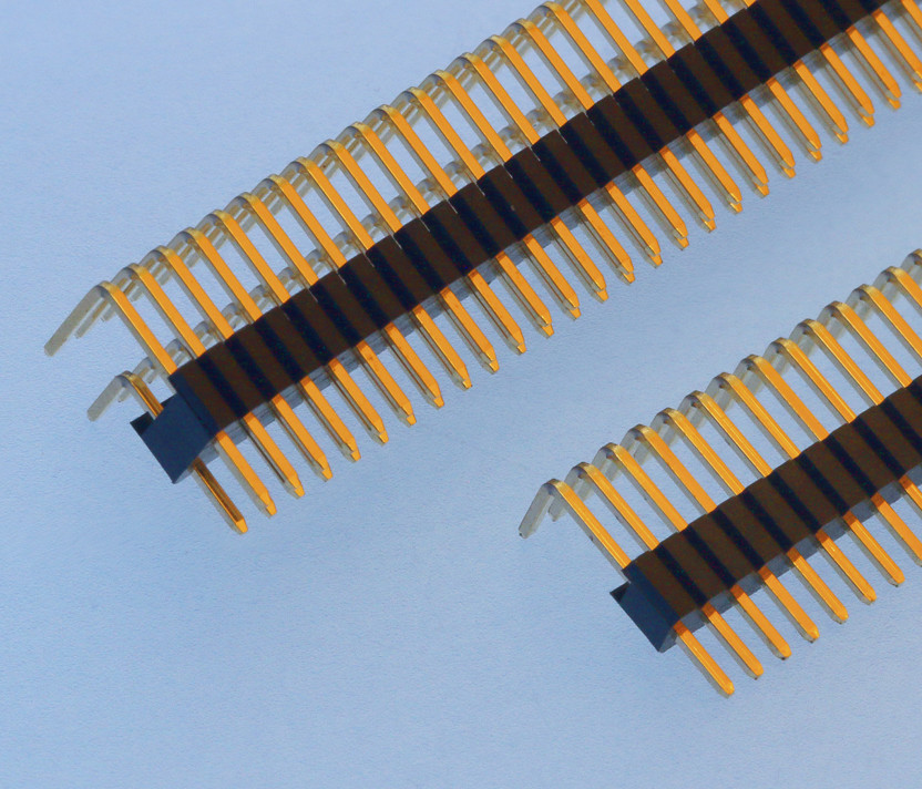 Stiftleisten RM 1,27x2,54mm, gewinkelt, 1-/2-reihig